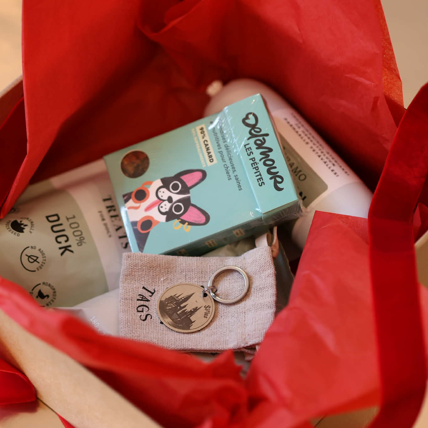 Galite rinktis iš 3-jų rinkinių MINI, MIDI, MAXI. Kuriuose galima rinktis pakabuką ir jį suasmeninti bei pradžiuginti savo keturkojį su rinktiniais skanėstais.